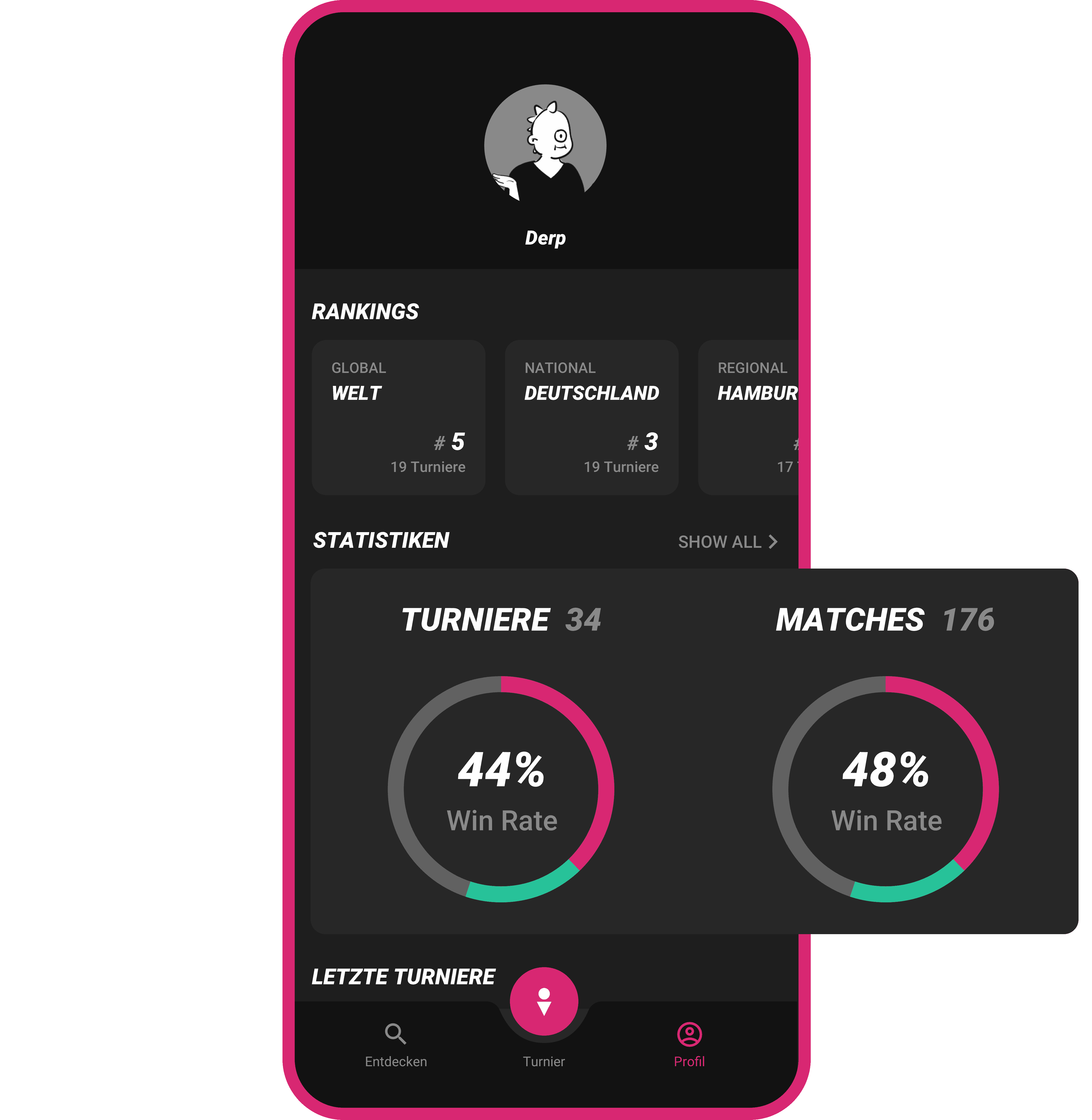 Finde Turniere in deiner Nähe und messe dich mit anderen Spieler:innen. Global, National, Regional oder Local Hero - mit Ranglisten geizen wir nicht und Fleiß wird auch belohnt.